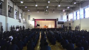 本日、体育館にて3学期始業式が行われました。